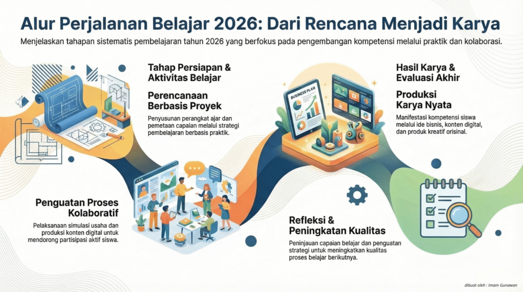 Modul pembelajaran dikembangkan sebagai panduan belajar yang adaptif dan kontekstual, mendukung aktivitas pembelajaran berbasis proyek, praktik, serta penguatan keterampilan abad ke-21